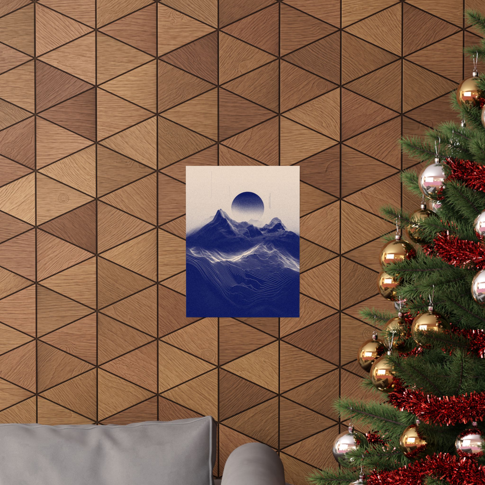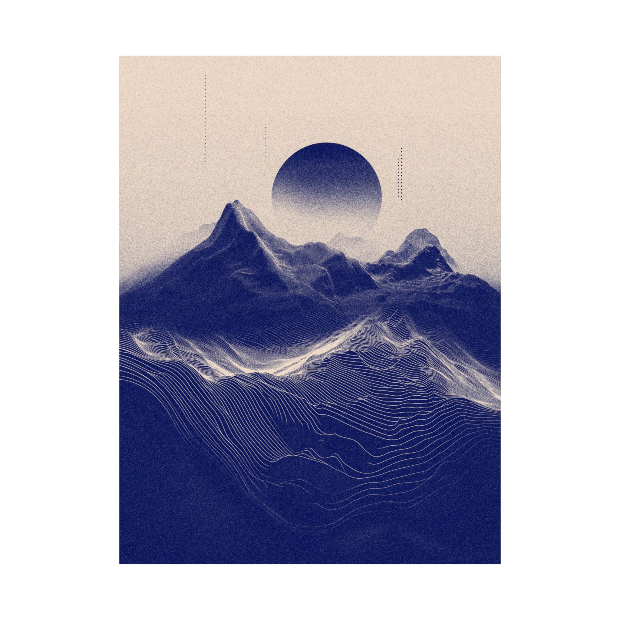 Let your space reflect a sense of calm with Continuum, a print that captures the quiet rhythm of indigo mountains and flowing topographic lines. The artwork blends natural forms with a sense of movement, offering a gentle visual presence.